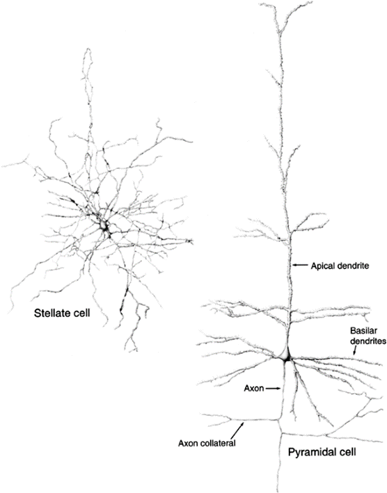 (3) pyramidal cell은 Golgi type I neuron에 stellate cell은 Golgi type II neuron에 속함